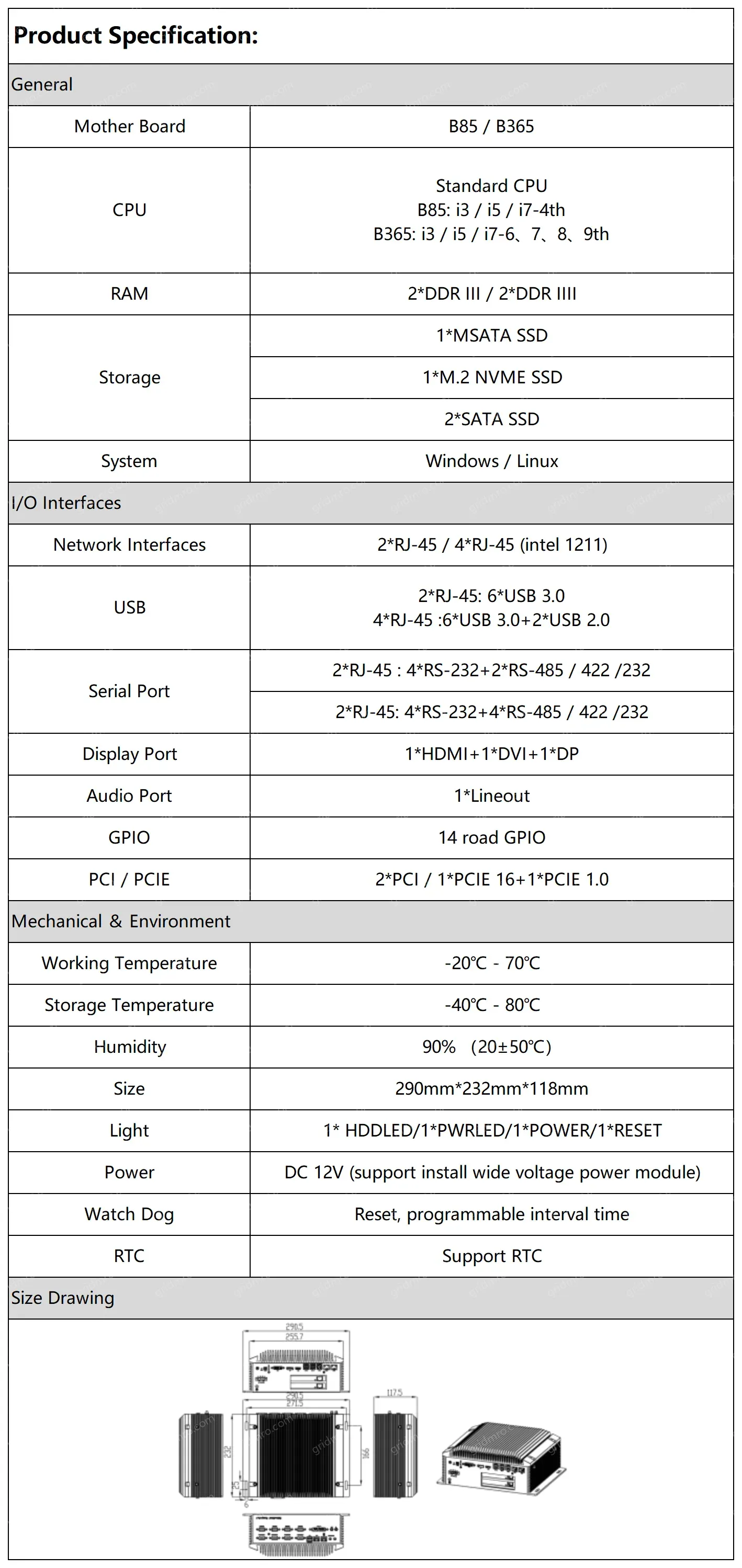 Size: 290.00mm, 232.00mm, 118.00mm; Diam:0.00cm